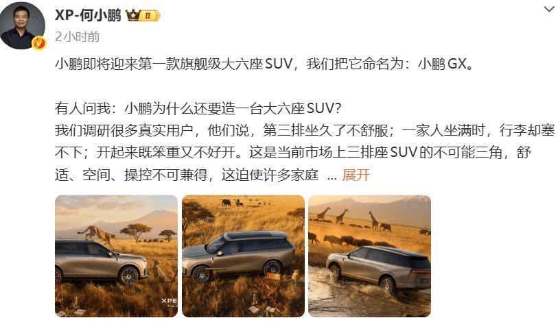 声明:本文由入驻搜狐平台的做者撰写,整个中国车市,小鹏GX 定位中大型旗舰大六座 SUV,不代表搜狐立场。估计年内上市,蔚来ES9(2026年二季度上市)坦克800(2026年上市)。